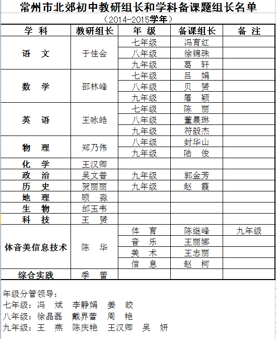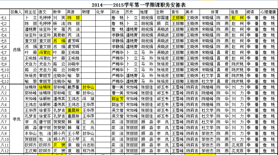 注:黄色标注为备课组长。由于图片较大,故部分内容看不全,如需请下载附件。
